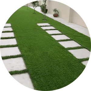 Implementamos césped artificial en zonas de alto tránsito vehicular. La combinación de nuestro césped artificial con pavimento de hormigón proporciona una opción estética y decorativa.